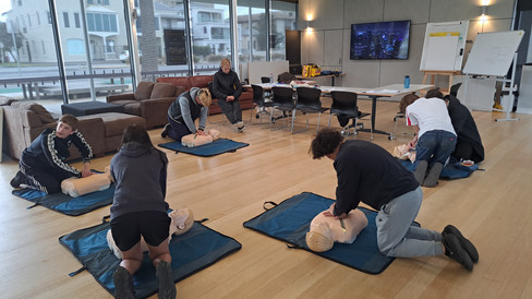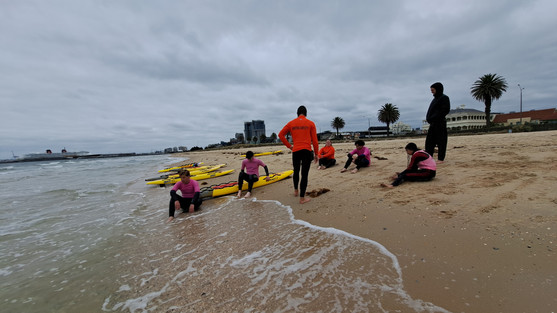 On Friday the 3rd, our group collected once again at Collingwood for another water activity, this time, surf life saving. In this session we headed to south melbourne surf club, and met with Rhys, a professional life guard. Rhys welcomed us to the space letting us explore and check out the storage shed and tower. When we had our fair share of looking around and talking about the many dangers of the beach, we headed to the lounge to talk further about Surf Life Saving Victoria. After this we looked closer at saving lives by going to the basics of first aid. We even got to experience cpr by working mannequins and going throught a 5 minute round on constant compressions. When done we had a quick lunch break before changing again into wet suits and heading off to the water. Taking turns in a beach buggy we went got some boards and followed Rhys into the water. When out the students had their time to experience the boards and beating water, battling the tide before riding it back to the beach to begin some rescue missions. Each student had their turn running to the water and being a person in need before their partners rushed to the water to save them with their boards. Many flipped and giggles were all round as everyone had their go. When done they did a relay rushing out against the waves and coming back before sprinting towards the road and back. This was to experience the basics of the Bronze Medallion, a training course to become certified Surf Life Saving Patrol Operators. When done we played some quick race games, finding Tas as our over all sprint champion, before finishing for the day and cleaning up for heading for the weekend.